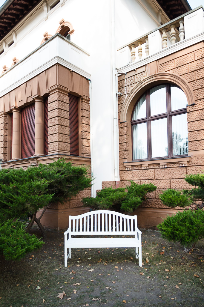 Wenn die anderen Gäste nicht drängen, kann man ums Haus schöne Paarfotos machen. In der Grünanlage sind paar weiße Bänkchen verteilt. Auf der Rückseite des Standesamtes befindet sich eine schöne Freitreppe, auf der auch ein Gruppenfoto gelingt.